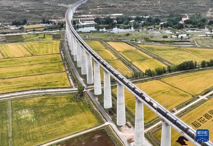 Train Passing Rice Fields in Jungar Banner, Inner Mongolia