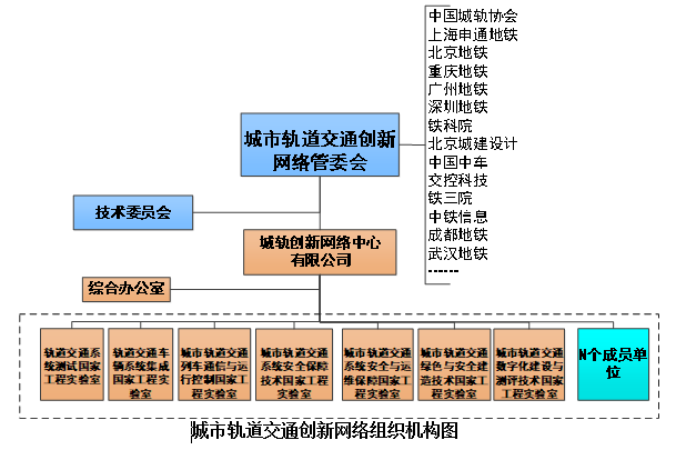 2016年3月,国家发展改革委发改办高技〔2016〕579号、581号、582号、583号、584号、586号、589号文件,在批复城市轨道交通领域七个国家工程实验室建设项目的同时,明确要求“拟依托城市轨道交通领域国家工程实验室为主构建城市轨道交通创新网络,建立产业链条各环节合理分工、协同攻关、共同突破产业创新重大问题的合作机制和利益共享机制,推动协同创新。城市轨道交通创新网络由管理委员会、技术委员会、创新网络中心及成员单位构成,牵头单位为中国铁道科学研究院,中国城市轨道交通协会协助开展城市轨道交通创新网络的构建、运行等工作”。