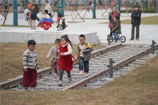 2月15日,小朋友在西安红旗铁路公园内玩耍。新华社记者 邵瑞 摄