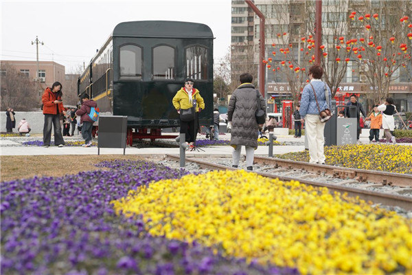 2月15日,游客在西安红旗铁路公园内游玩。新华社记者 邵瑞 摄