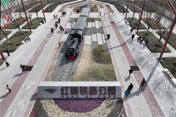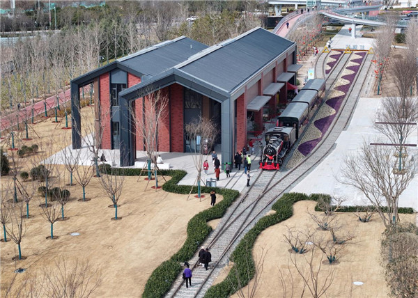 2月15日,游客在西安红旗铁路公园内游玩(无人机照片)。新华社记者 邵瑞 摄