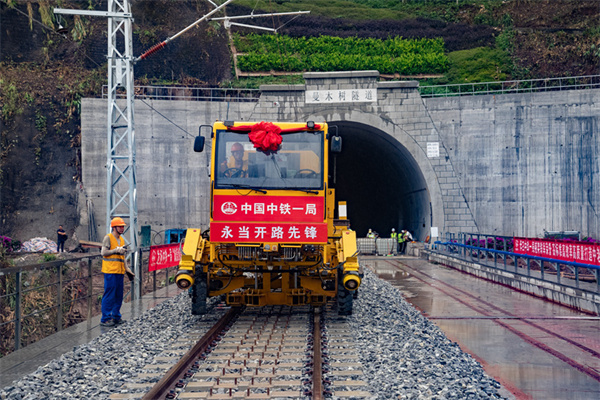 人民网北京10月12日电 (记者王连香)记者从中国铁路昆明局获悉,10月12日10时,在中老铁路曼木树隧道出口,随着我国自主研制的新型长轨牵引车,将最后一组500米长钢轨精准推送到位,标志着中老昆万铁路全线铺轨完成,实现国内与国外连通,向着年底开通运营目标迈出了重要一步。