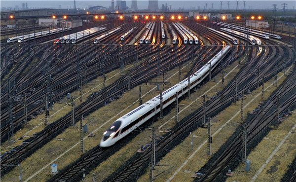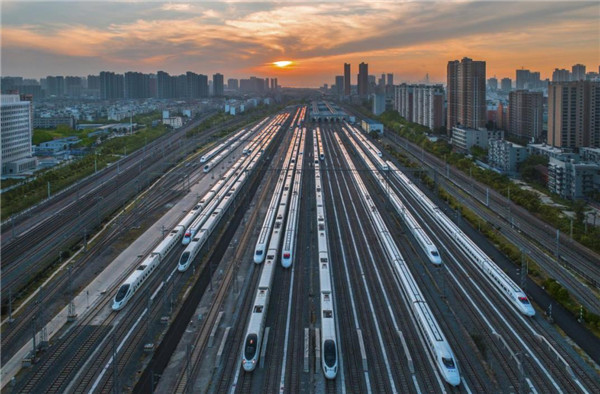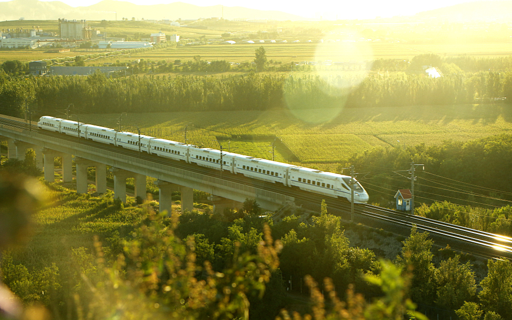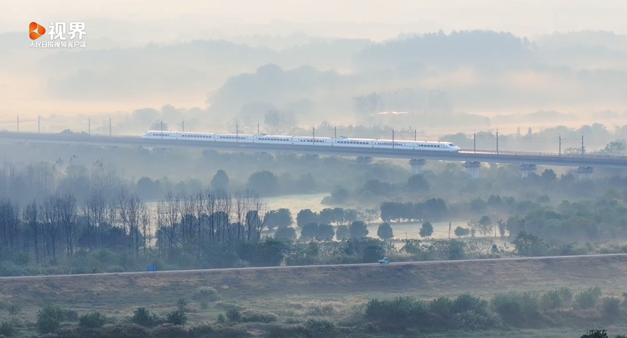 人民日报微博:高铁穿行清晨的安徽池州杏花村