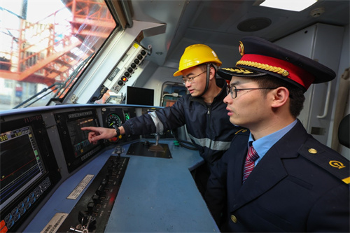 4月12日清晨,中亚班列(武汉)实现常态化开行的首趟班列X9011次,装载湖北省及华东、华南地区的石材、卷钢、瓷砖、空调等物资,从中国铁路武汉局集团有限公司(下...
