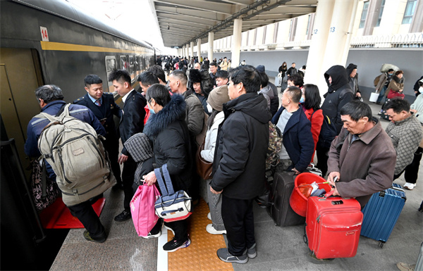 1月14日,河北邯郸站,旅客排队乘车。郝群英 摄