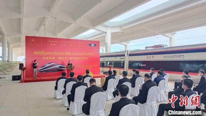 中新社北京10月16日电 (记者 周音)记者从中国铁路国际有限公司获悉,16日11时(老挝时间10时),一列红蓝白三色涂装、呈流线型的动车组运抵刚刚建成的中老铁路万象站,正式交付老中铁路公司。该动车组被命名为“澜沧号”,将于近期投入中老铁路动态检测。
