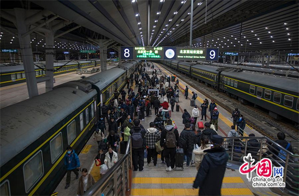 登上K4159次列车的旅客。中国网记者 马旷/摄