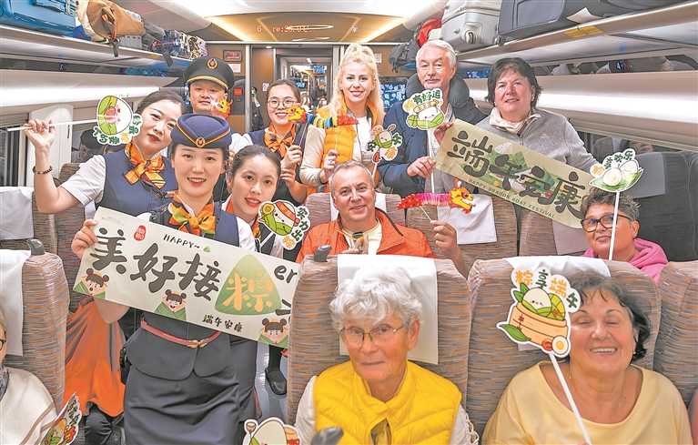 这场飞驰列车上的文化盛宴,让粽叶清香与欢声笑语沿着钢轨蔓延,传统习俗在旅途中焕发新彩,中外旅客共同编织了属于铁路端午的独特记忆——路再远,情常在。